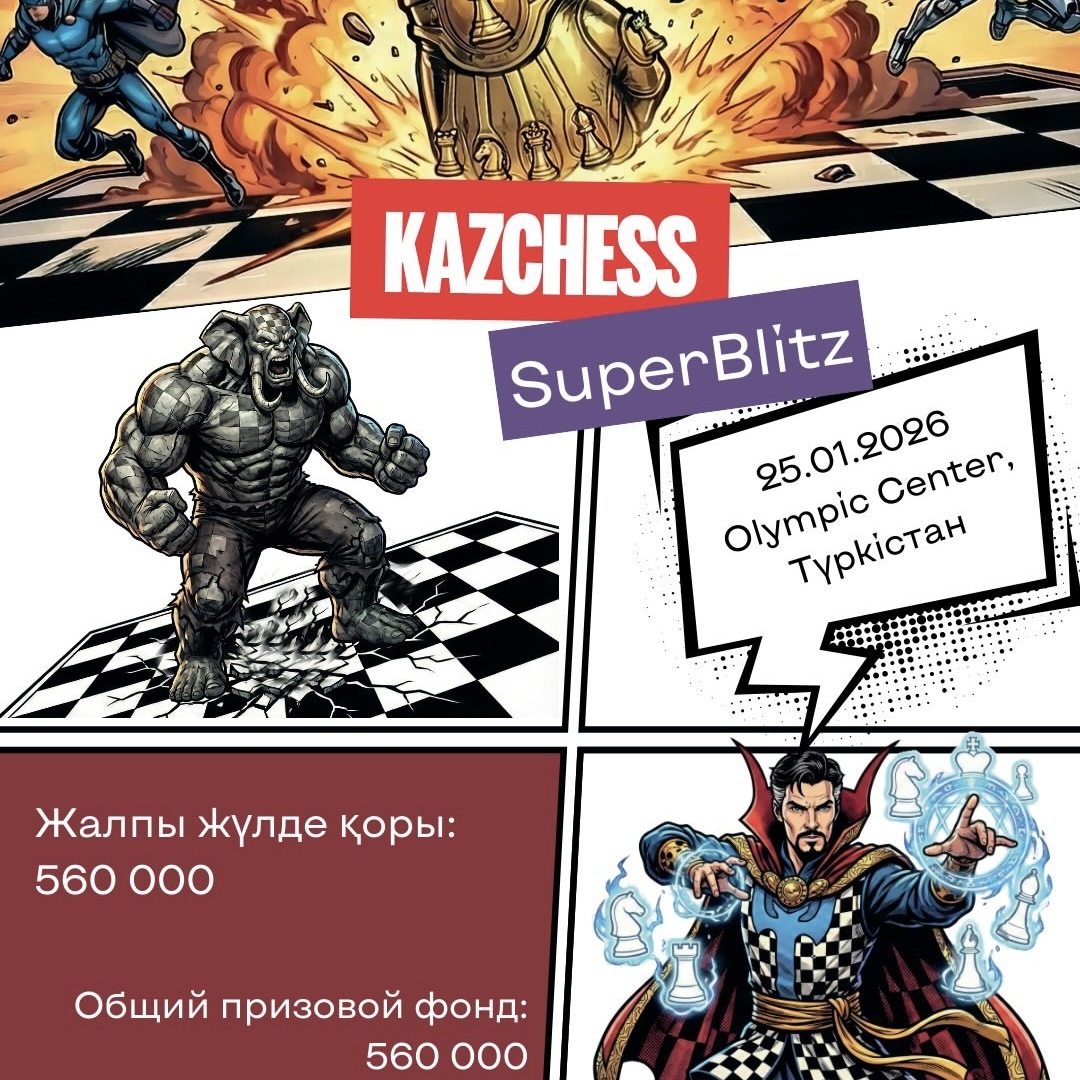 ҚР чемпионаты–2026 аясында өтетін KazChess SuperBlitz турниріне шақырамыз!